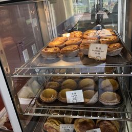 Short and sweet: you can't go wrong with their traditional egg tarts or their Portuguese style egg tarts. Small mom & pop bakery, no thrills or frills....nothing fancy but the quality is there. Warm, fresh and delicious. Parking can be a hit or miss. Sure it's a big lot but if you come during prime lunch or dinner hours....good luck. There's a Chinese family style seafood restaurant and a gym in this plaza (amongst other small businesses that are also located here). Every time I'm back home in the SGV, I try to make it a point to get some egg tarts here.